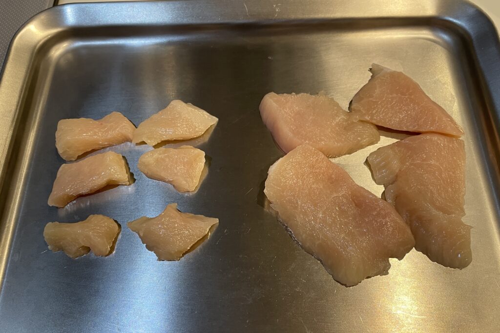 ささみ・鶏むね肉をゆでたもの、鶏ハム・サラダチキンも苦手なので鶏肉は焼いたり揚げたりしてだしています。