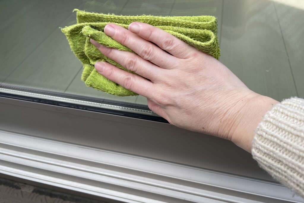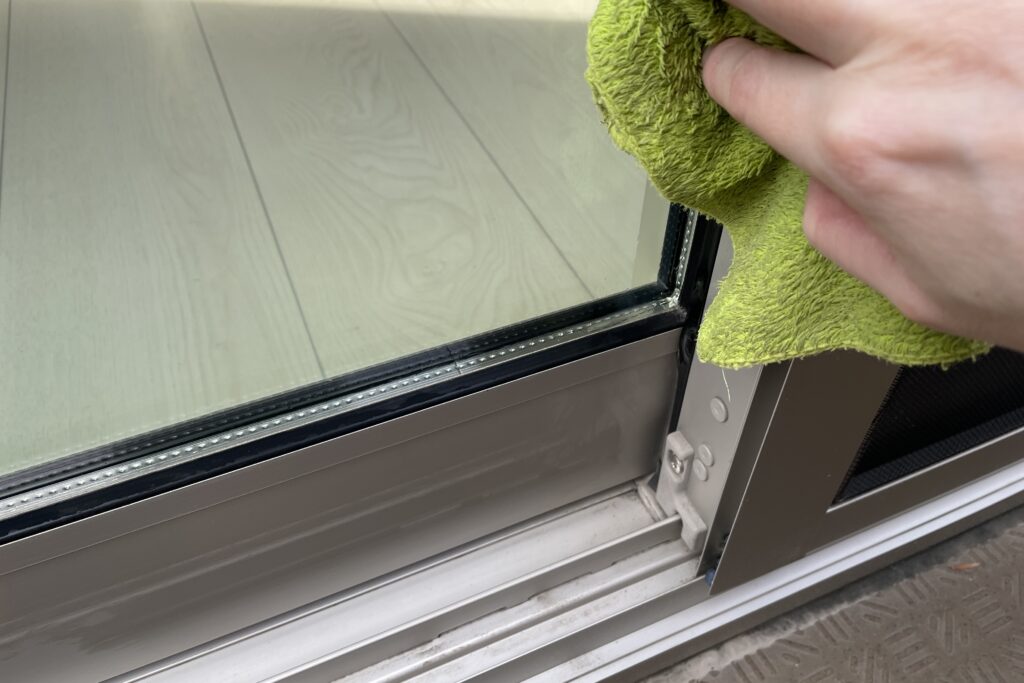 窓のサッシを拭く